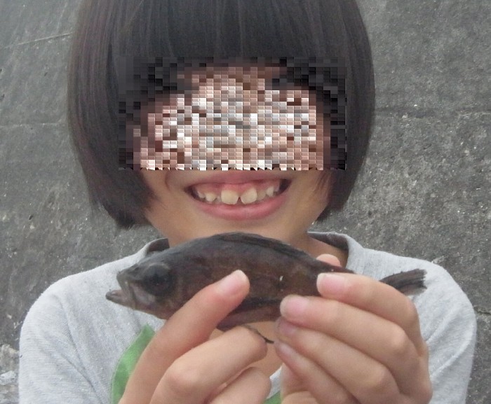 8:20 餌などを購入し目的の波止を見たところ釣り人が少ないので,叩くことにする。昨年メバルを数釣りした潮通しの良いところが空いていたのでそこを狙おうとするも,ルアーマンに場所をとられてしまう。しかし,へちりなので,ルアーマンのすきを突きながらへちる。河豚の猛攻を受けるが,オーバーハングの中を琵琶湖エビで叩くと大きなアタリがありHIT。軽いのでごぼう抜き。