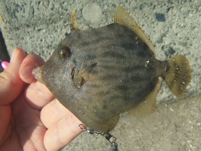 先端部でも状況は同じ。コモンフグが釣れるだけだが,良く考えてみるとまともに写真を取ったことがないので,撮影してみる。