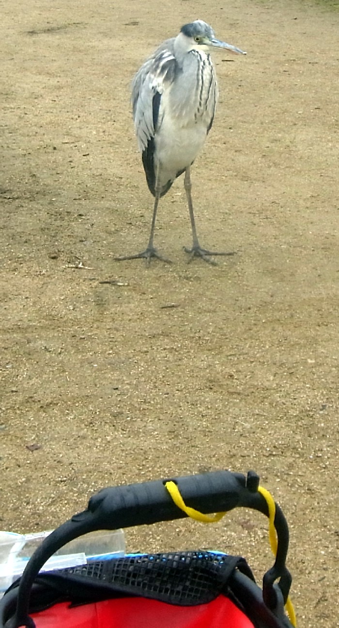 10:30 近くの湖に散歩に行くことにする。釣り道具は持参せず野鳥観察に行くことにする。