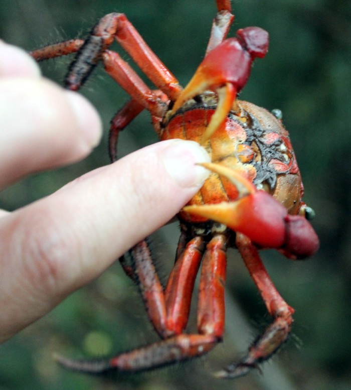 15:00 蟹が無くなったので,採集に行く。何とか採集場所は陸地になっていたので,10匹ほど採集するも,大型のイソガニに親指をハサミでやられ痛い目に遭う。