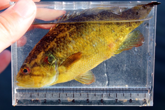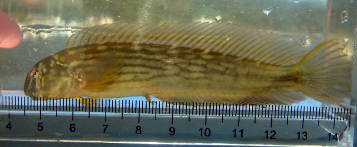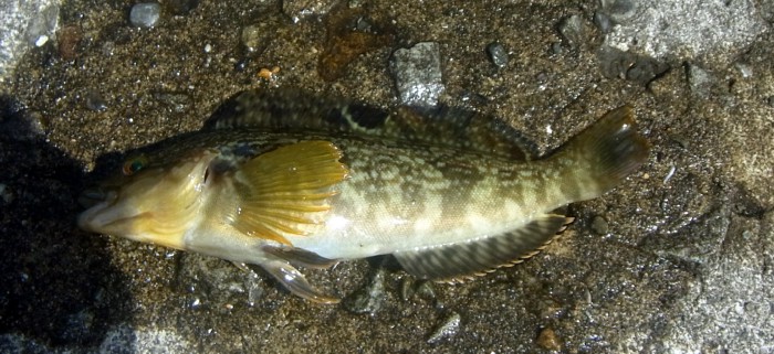 第一背鰭と第二背鰭が分離していると思い,ハゼ系の魚を疑ったが,他の写真を見ると繋がっていたので,同定確定。やはり念のために撮影用のケースを持ってきた方がよさそうであることを痛感した。