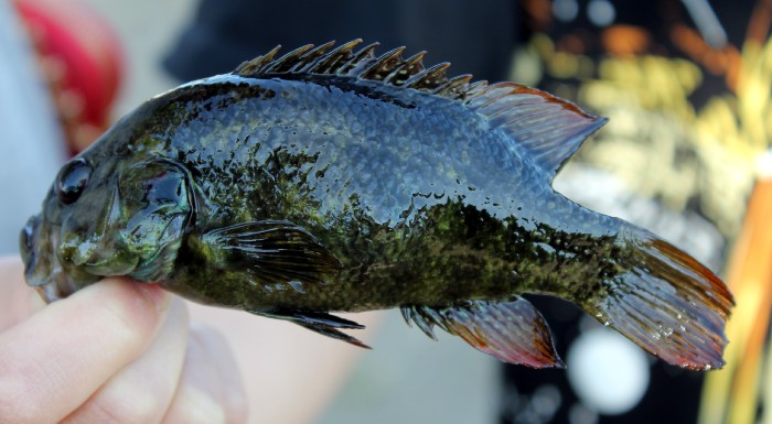 11:00 カサゴもそれなりに釣れたので,納竿。本日の釣果はカサゴ約20匹/メジナ2匹/小紋河豚1匹/草河豚2匹/彼岸河豚1匹/キュウセン2匹。