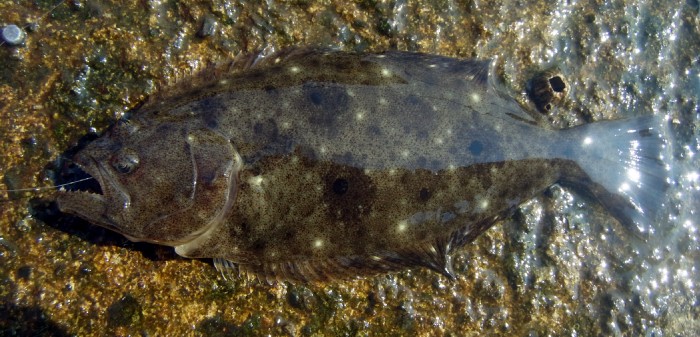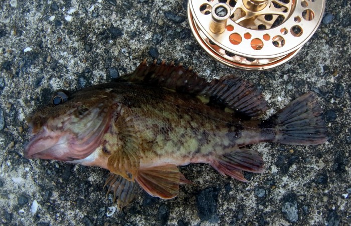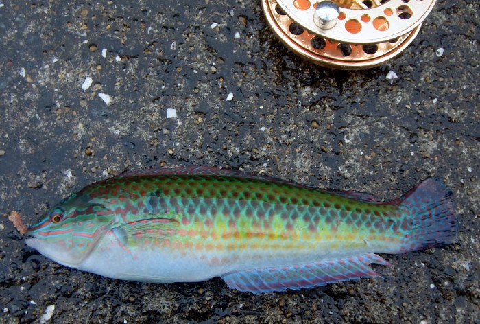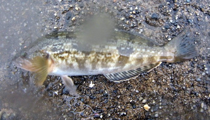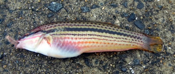 おそらく過去最高の大きさ。しかも波止と色的にかぶっている。結局,蟹餌に喰いついてきたのはこの魚だけであった。
