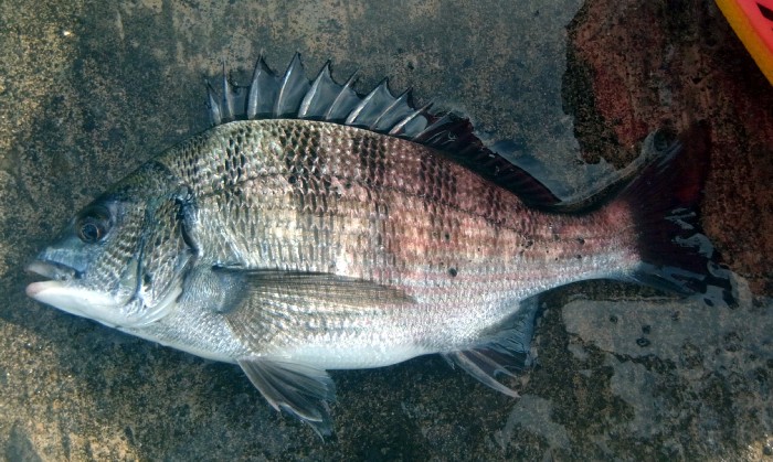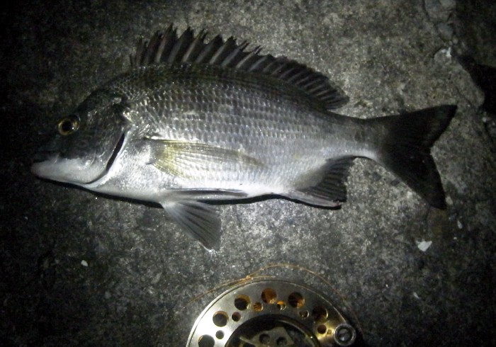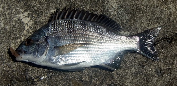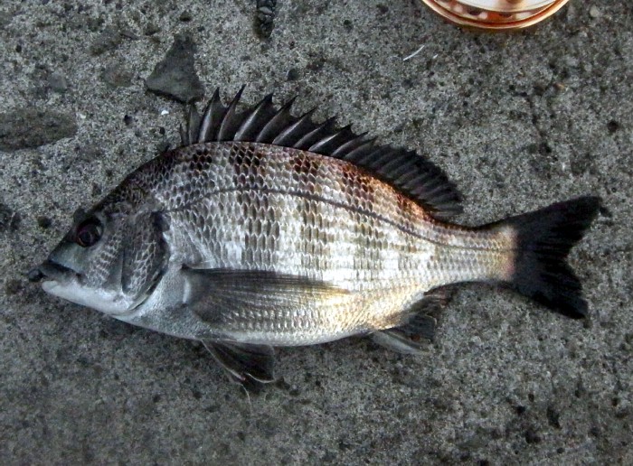 10:00 ようやくアタリあり。黒鯛ではなかったが高級魚なので持ち帰る。