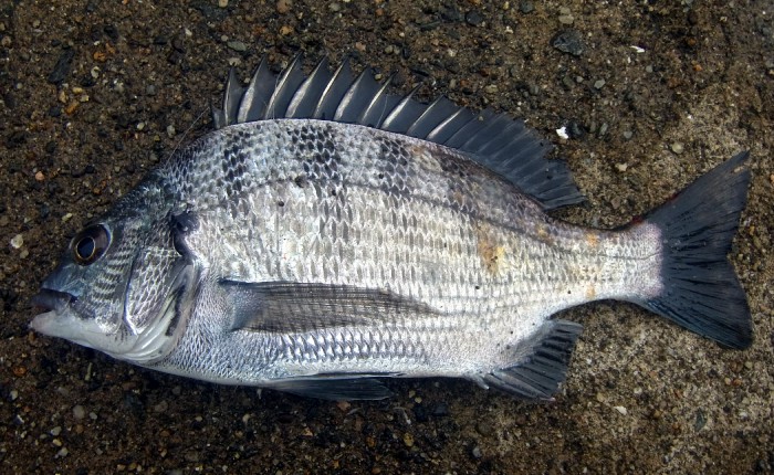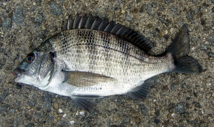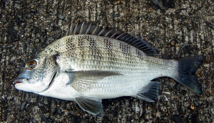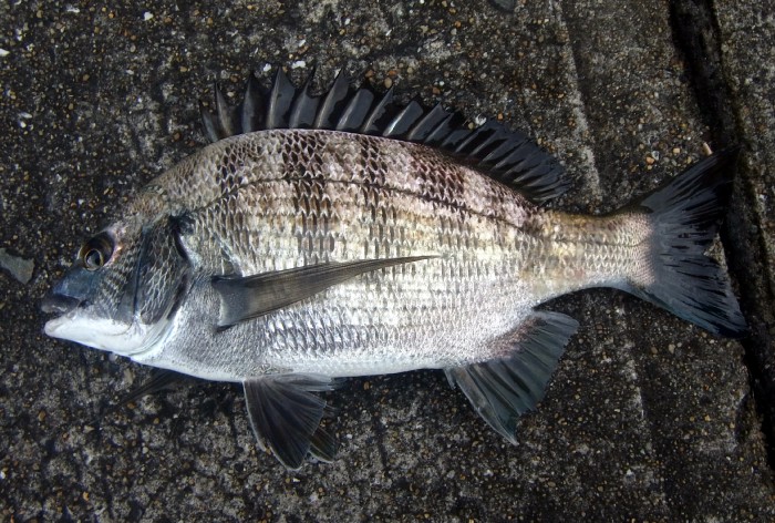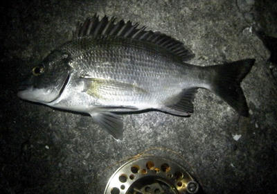 へち際でなく,やや前打ち気味に底狙いで叩いたところ釣れた。しかし,引きはそれほどでもなかった。例年の傾向だが,黒鯛よりも型が良い。そういえばキビレは夏産卵型なので,乗っ込みの時期なのかもしれない。
