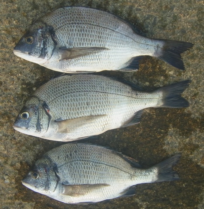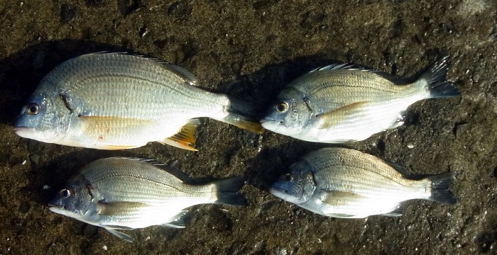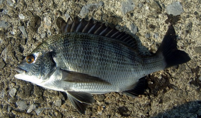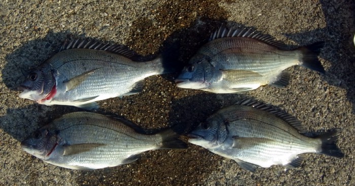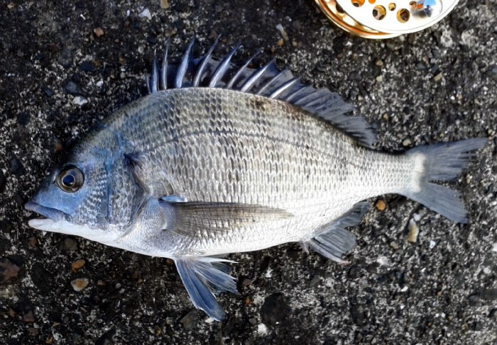 17:00 納竿。本日の釣果は黒鯛9匹/アイナメ4匹。黒鯛は20㎝over個体のみ持ち帰る。小型ばかりだが最後まで必死に抵抗する黒鯛引きを堪能で来て満足した。黒鯛の下処理をして帰宅。