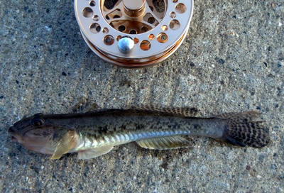 17:00 引き潮に転じて,川からの淡水が流れ込んだためか,赤潮状態が緩和されたので,外側を叩く。意外にも水深があり,へちれる。マハゼの良型がHIT。