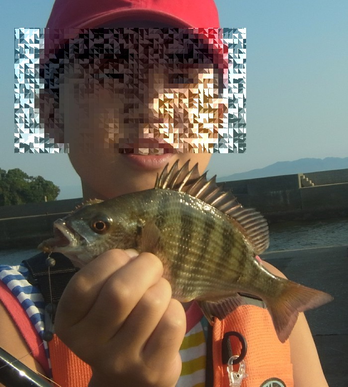 久々のタケノコ君。持ち帰り刺身にして食べたが,メバルと同じように歯ごたえと旨みがありとても満足した。ちなみにリールはリョービの【チヌキャッチャーミニ】。20年以上前の小学5年生のときに地場釣具店で親から買ってもらったもの。そのときにオリムピックの波止用の竿も貰ったが,不用意に扱いダメにしてしまった。リールもブレーキが壊れておりダメなのだが,リョービ社自体が釣り具から撤退しているので,もはや修理すらできない。しかし,巻くことは出来るので,今回はムスコ用で使用してみた。へちりにおいてはスピニングリールより使い勝手は明らかに良い。