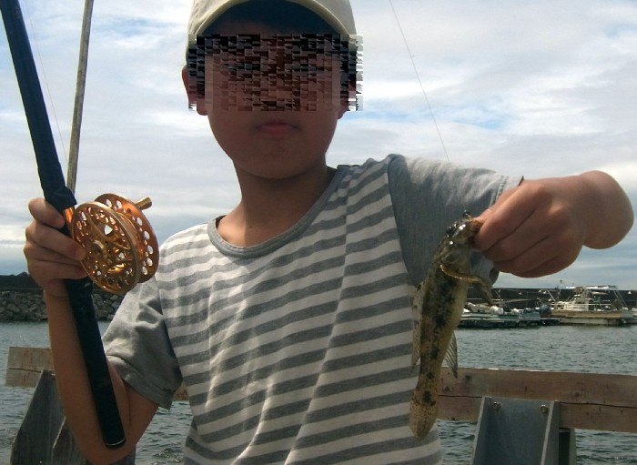 8:10 別の波止に移動。こちらは釣り人は数名入っているがすべてルアーマン。こちらは浅くて,潮流も緩やかであり,ムスコも土地勘があるので,好きにやらせる。ムスコがアタリがあるが,中々釣れないと言うので,へちって見ると,アカメバルがHIT。その後も連続して釣れて,どうやら群れがいる模様。しばらくすると大型個体もHIT。