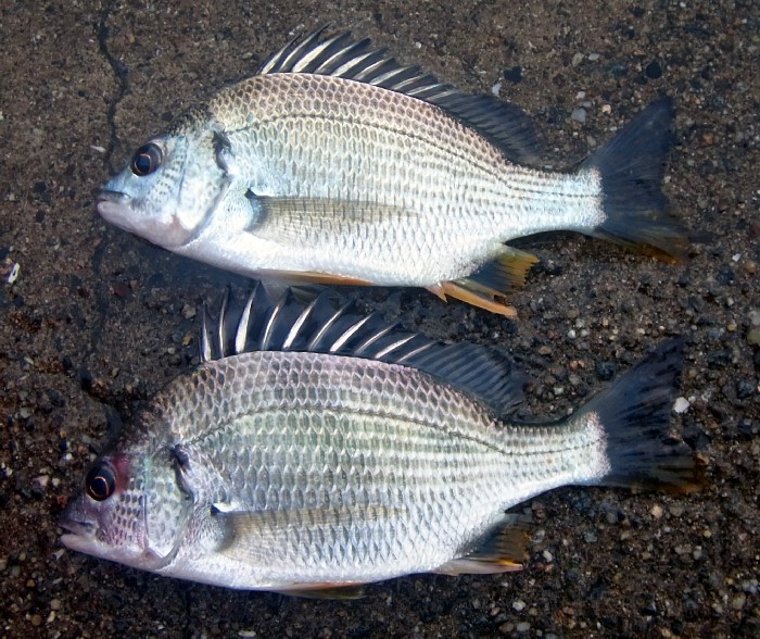 キビレも黒鯛も今の時期は小型だが,キビレの方が一回り大きい傾向にある。