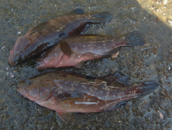 中九州ではアコウという。さらに,ウキ釣り師のおじさんから1匹もらう。