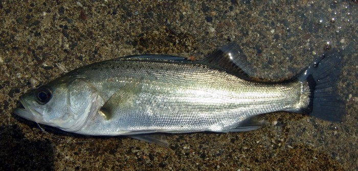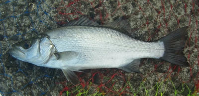 【いつものスズキと何か違う個体。ごぼう抜きできなかったので,タモを投入して何とか確保。30㎝over】