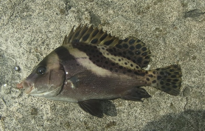 いると言う情報は聞いていたが,磯も全くない場所なので,意外な感じ。小さいのでリリース。その後も殆どアタリなし。