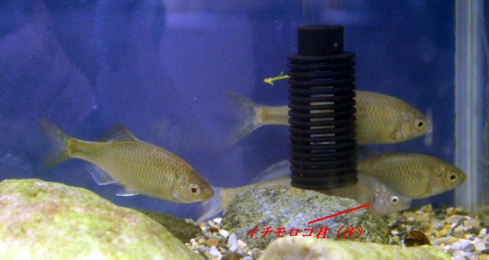 12:30 子らが遊具に乗りたいと言うことで,その間に資料館を見学。近くの湖のコーナーがあり展示物を見てみると,イチモロコ君とせぼっちが別々の水槽で展示されていたが,せぼっちの水槽にイチモロコ君が混じっているのを発見。職員に伝える。ついでにイチモロコ君が多数入っている水槽に1匹せぼっちが混じっていることも伝える。