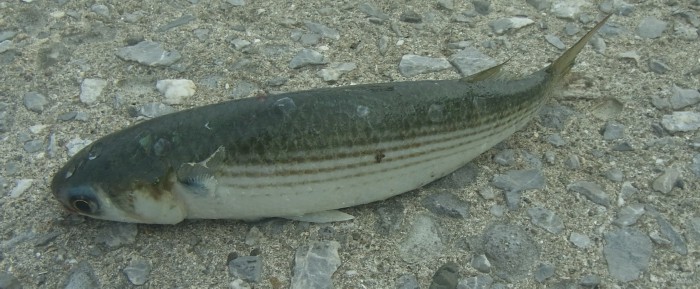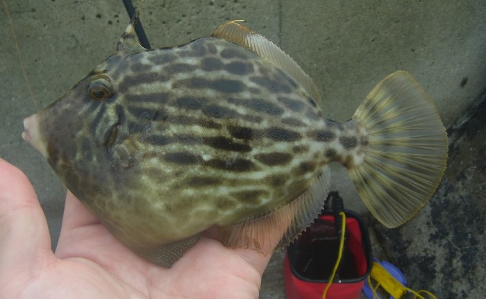 その後も同じやり方で,セイゴやキビレや黒鯛が上がる。さらにヒガンフグまで釣れてしまう。