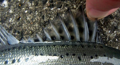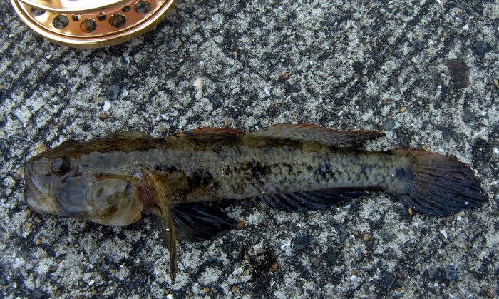 13:00 最初のスロープ状のところに戻り,へちる。しばらくするとウロハゼがHIT。ムスコを呼び,へちらせてみる。車に道具を取りに戻ったところ,あっさり釣れていた。