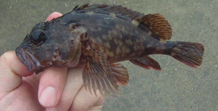 9:10 蟹を引きこむアタリあり。合わせを入れると,カサゴのようなものがHIT。良く見ると何か違う。