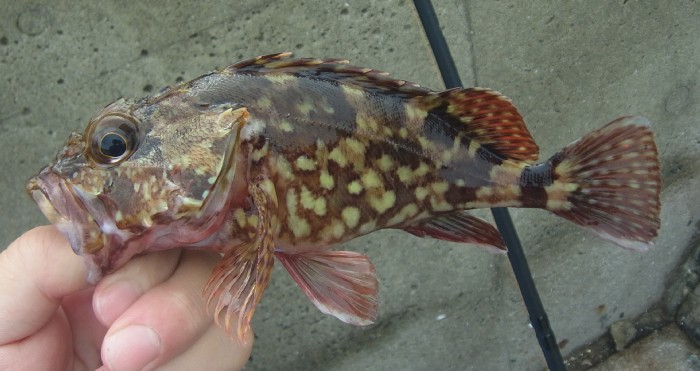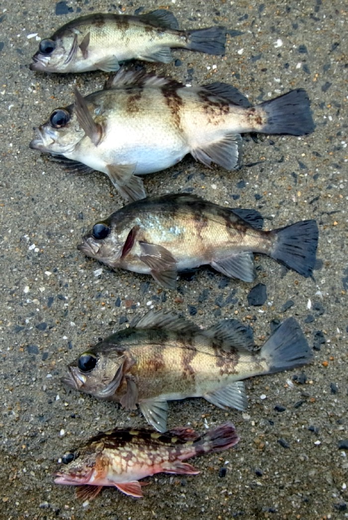 本日の釣果はシロメバル4匹/アカメバル1匹/カサゴ2匹/コモンフグ1匹。
