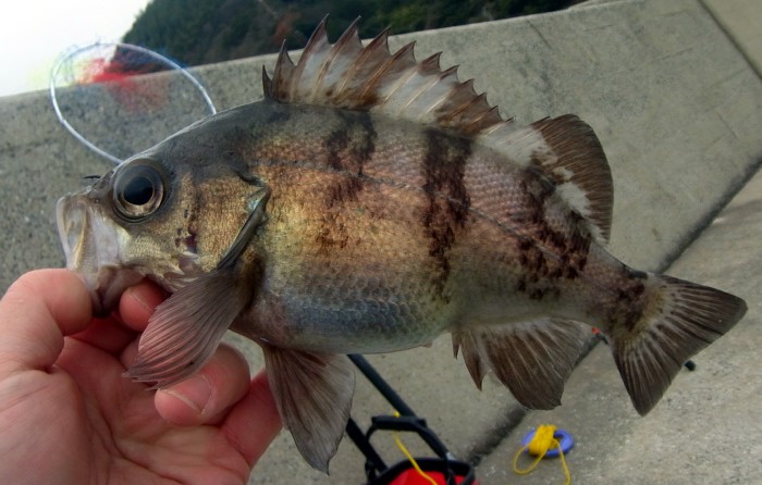 それなり良型だったが,やはり黒鯛ではなかったので残念。さらに落とし込み始めで,止まるアタリがあり合わせると,久々の魚がHIT。