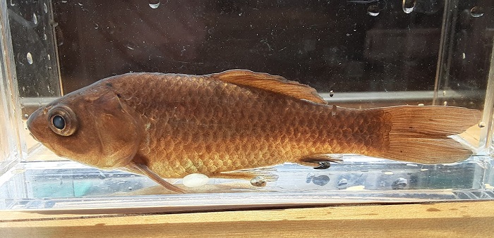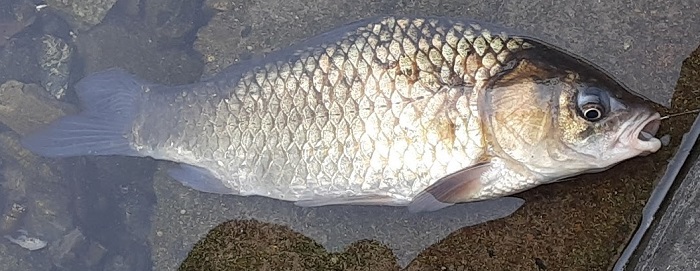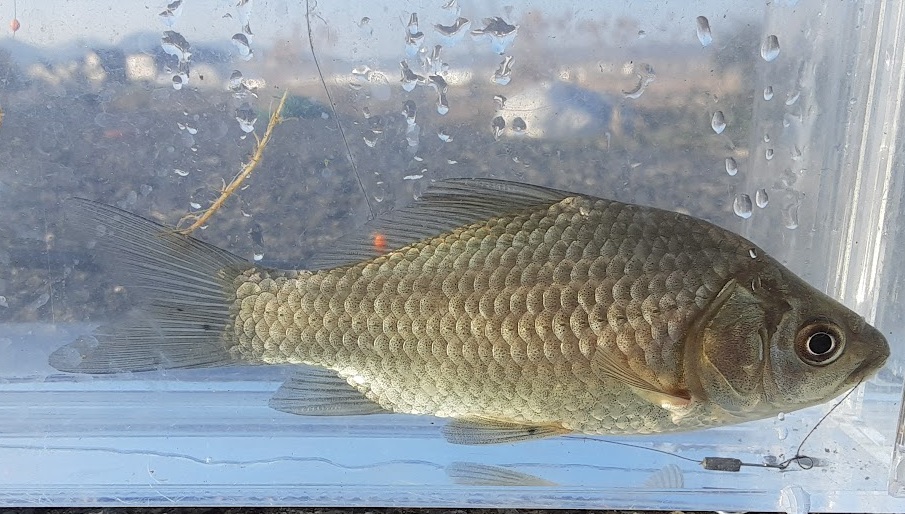 とても肥えた個体だった。ゲンゴロウブナかと期待したが,良型の尺鮒であった。