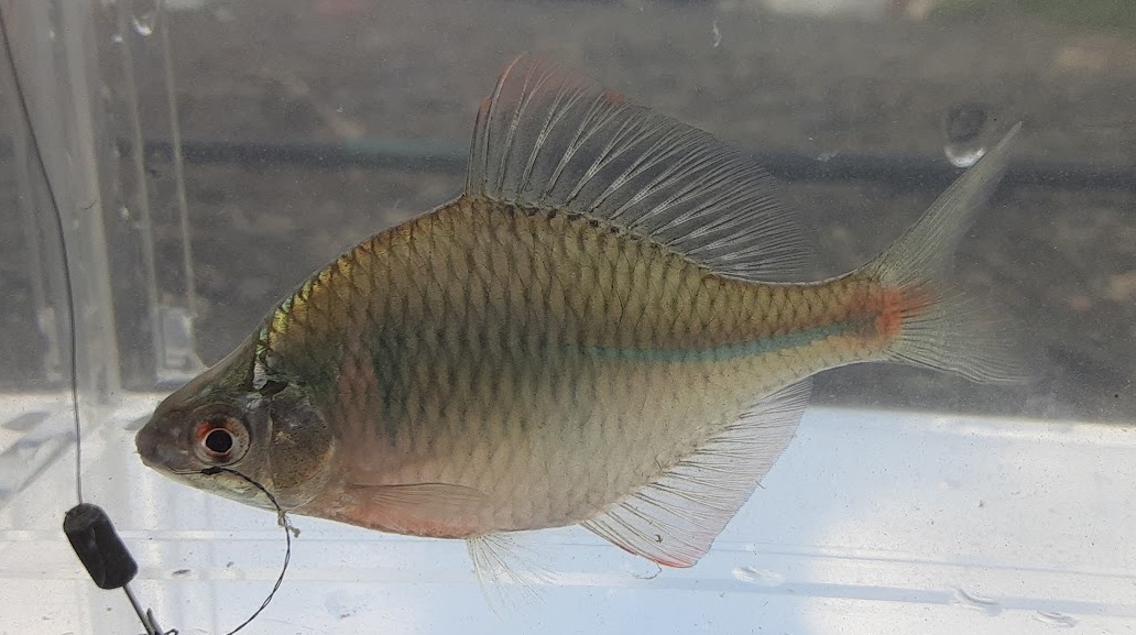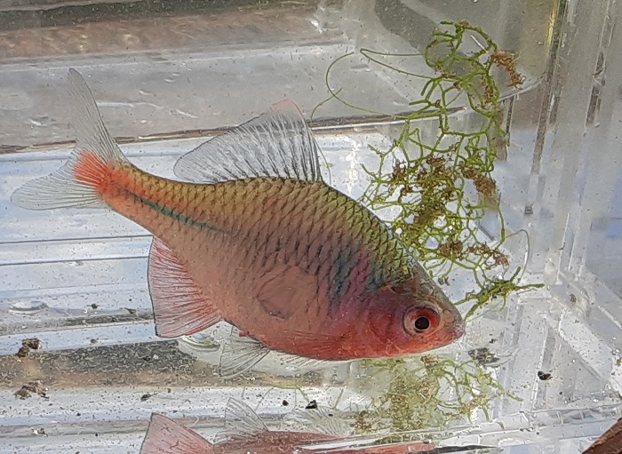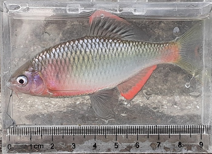 スリムな体形ではあるが,タモロコと比較するとそうでもない(爆)。婚姻色はイマイチで問題がある魚だが,やはり美しい。さらに小さきものもHIT。