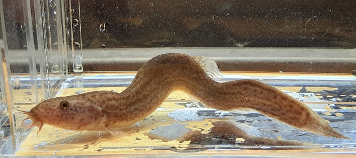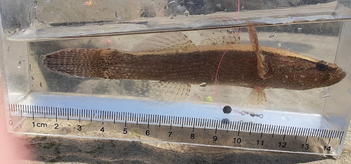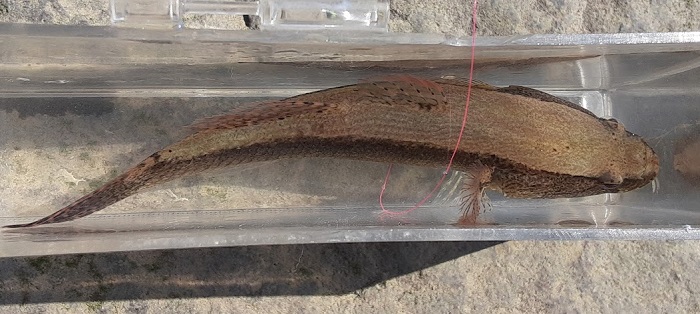 先週も下見に来ていた場所ではあるが,ウロハゼでもマハゼでもない違和感を感じた。全体的な見た目が余計な模様も入っていなくシンプルであること,そして頭があまりに大きすぎること,そして何よりも経験則的に釣魚として初めて見る魚であること。狙っていたがようやく釣れた感じ。背鰭の軟条も多すぎるし,尾鰭の模様がシンプルなのが最大の特徴。狭くて汚くて工事も入っているが水底は泥沼で明らかに生息には適しているようで,ここがコロニーなのだろう。この付近では何度も試したことはあるが,マハゼやウロハゼしか釣れたことはないので,相当ピンポイントにしか生息していない模様。