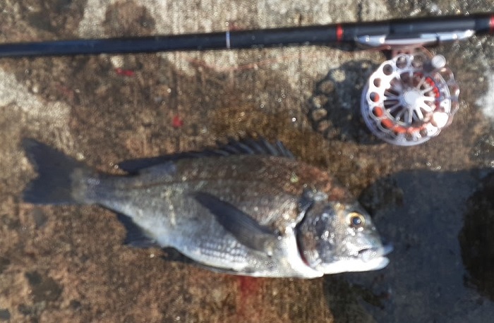 18:00 日没により納竿。本日の釣果は黒鯛4匹。短波止にはかなりの数が入ってきておりしばらくは期待が持てそう。結局今日は先端部に行くことすらなかった。