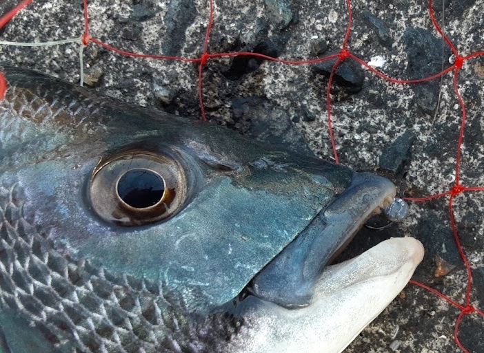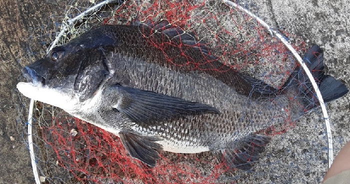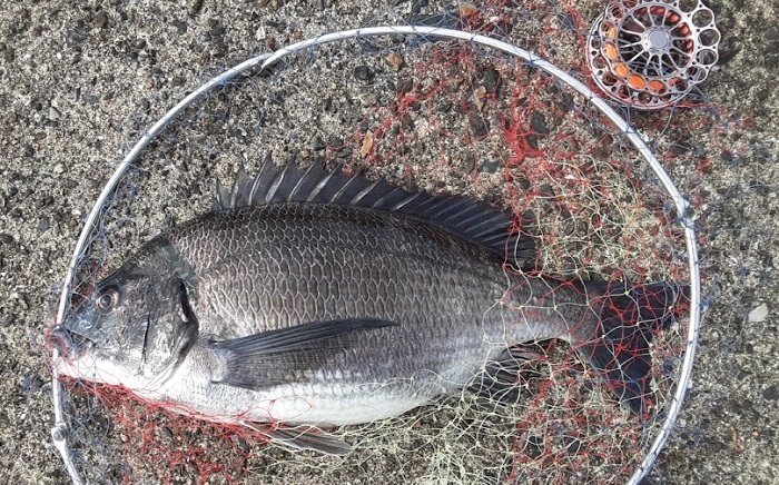 とてもよく超えていたチヌであった。荒食いしすぎて居付いてしまった感じである。しかし,ここで魚を絞める道具を忘れてきていることに気付く。しょうがないのでリリースしようとするも網に巻き付いて傷ついてしまったので,やむなく持ち帰ることにし,近くの釣り人に道具を借りることにする。しかし歩く方に来ているので1㎞ほど歩いて戻ることになる(爆)