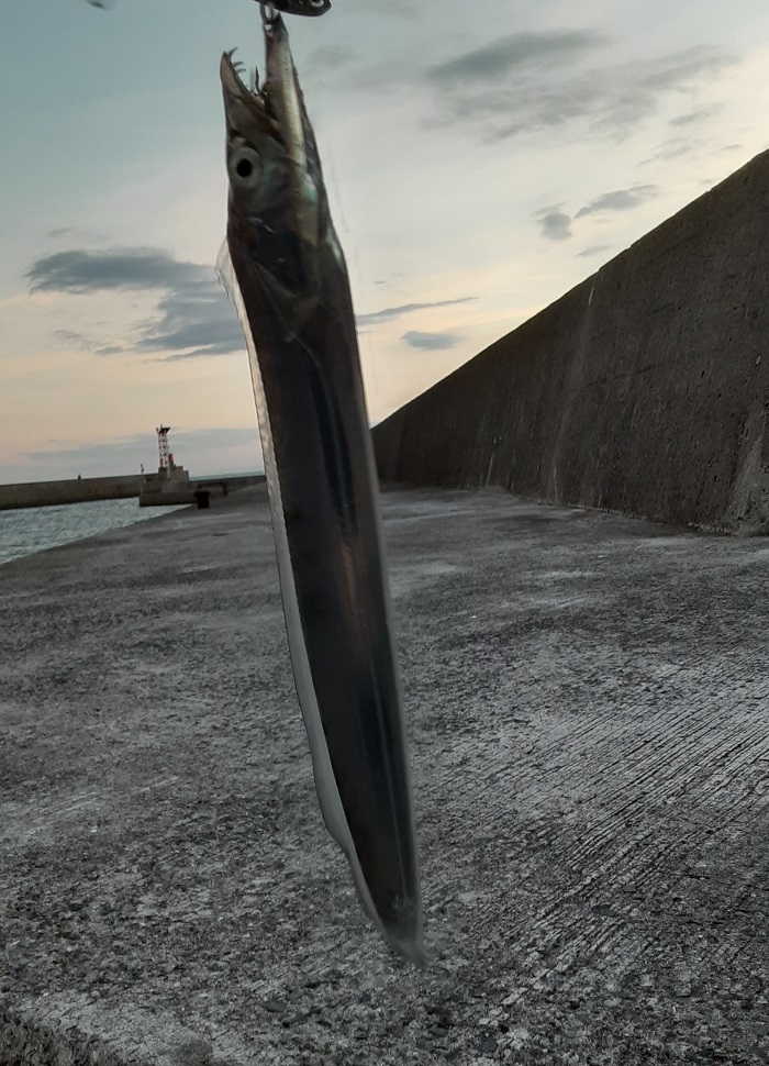 中波止で数年ぶりに釣れた。型は小さいが中層で糸を引き込む痛快なアタリだった。