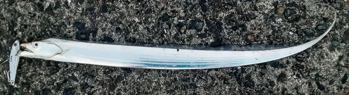 予想通りの30台後半の個体。餌もたくさん食べており腹もパンパン。引きごたえはかなり素晴らしかった。その後もう1枚追加して,タチウオ狙いに変更しダ〇ソールアーを投げる。しかし,ノーリアクション。