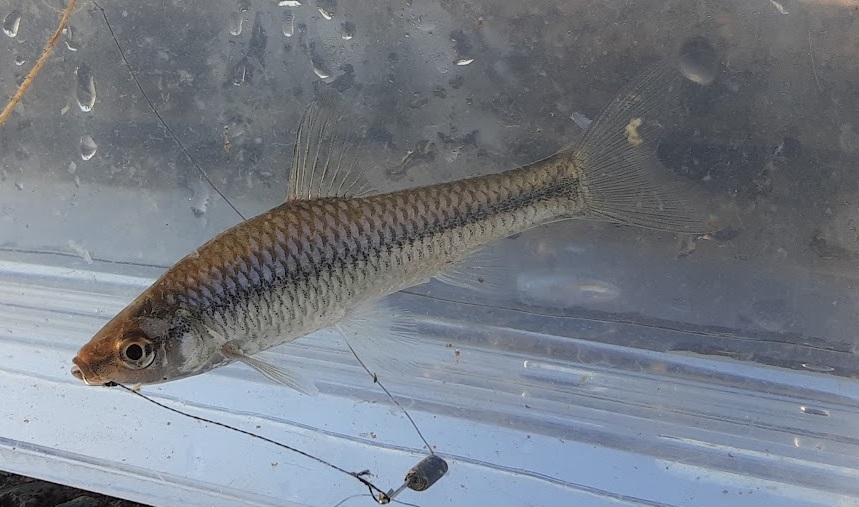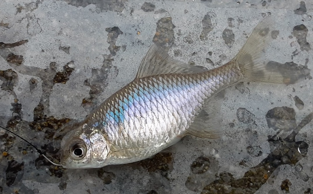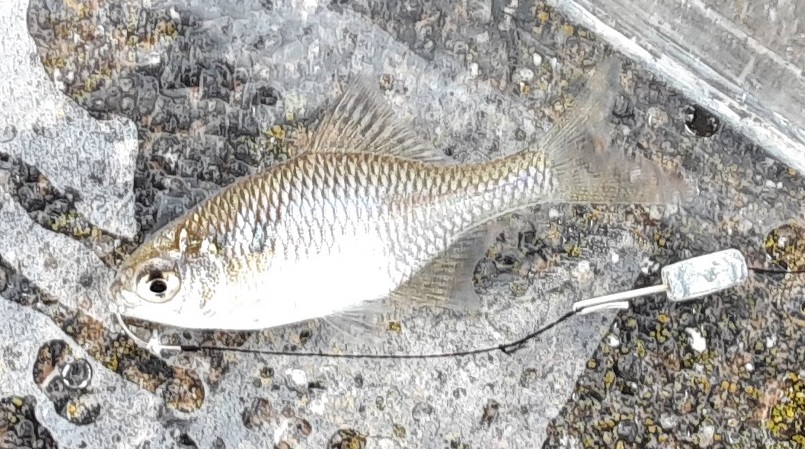 何とか釣れた1匹。そういえば漆黒の婚姻色のモツゴはもう10年位見かけていない。これもだいぶ減っている感じ。色々釣れていい釣り納めとなった。