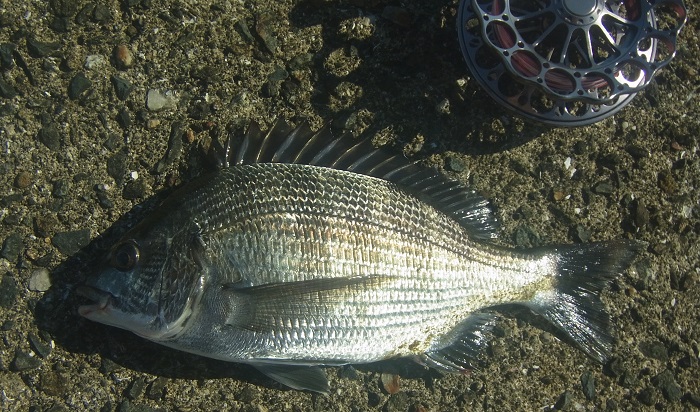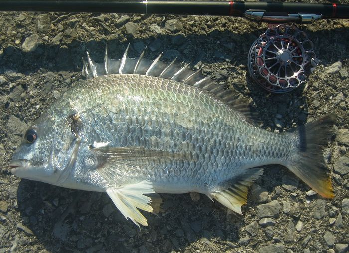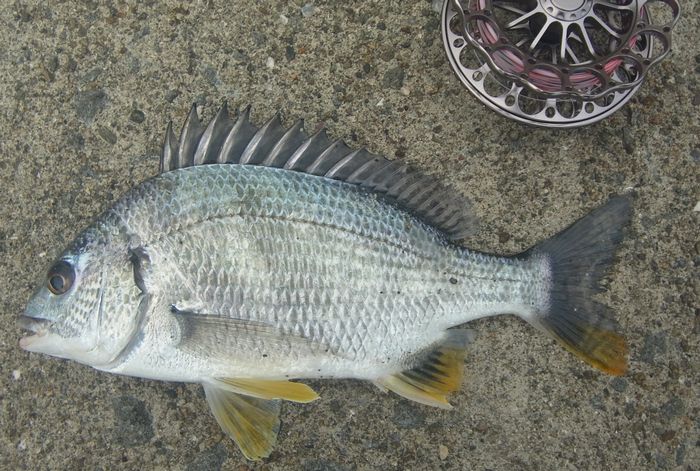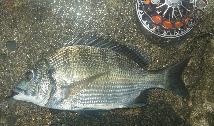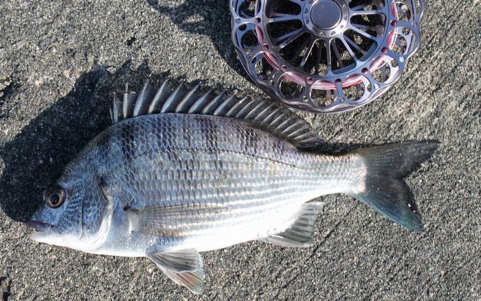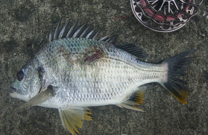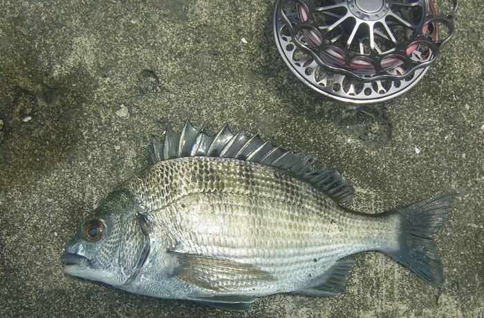 18:30 満潮になり反応がなくなったので納竿。本日の釣果は黒鯛2匹/オイカワ2匹。