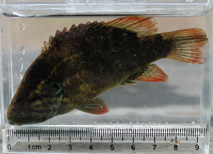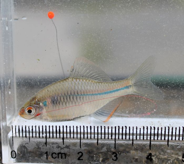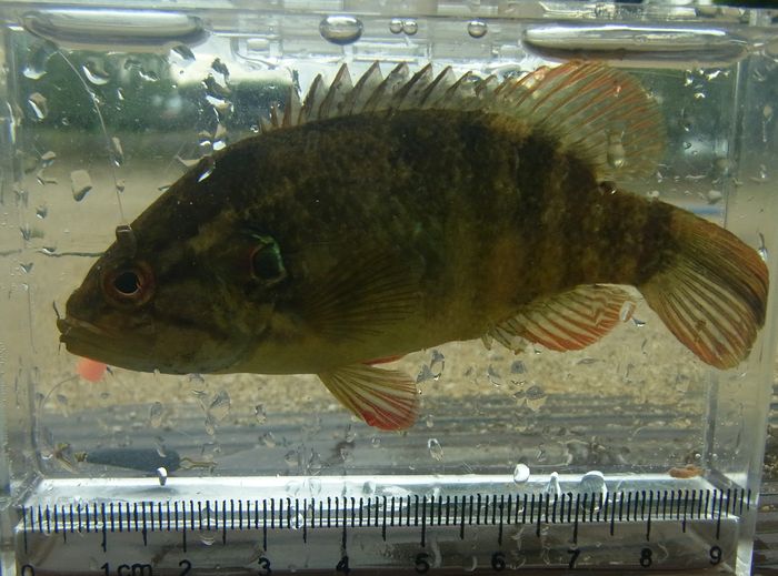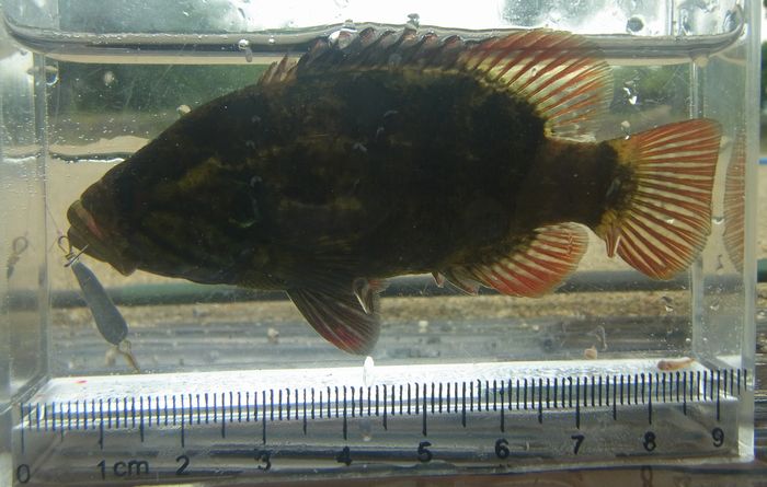 釣れた瞬間は久々なので自信がなく,水槽で確認。しかも粘粘するので,針を外すときに仕掛けが絡まり大変なことになる。