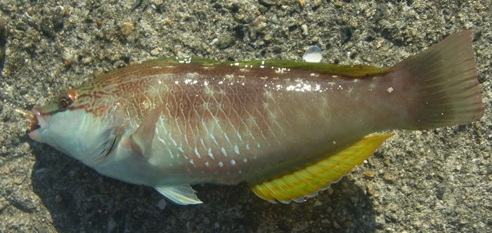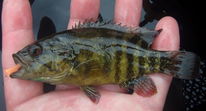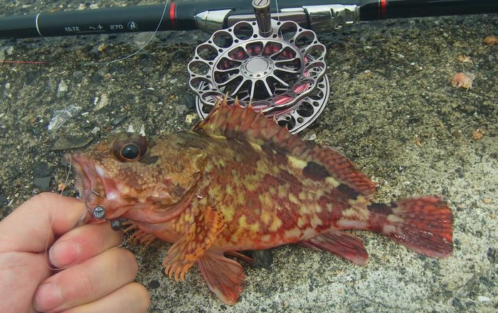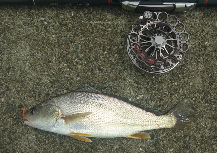 それなりの大きさだったが全くのやる気なしの色の個体。これもここの場所らしい個体と言える。1匹だけ上から見ても紅白な個体がHITしたがばらしてしまった。次はその個体を狙いたい。さらに久々の魚もHIT。