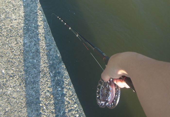 12:00 時報の合図とともに釣り開始。護岸のへち際を探る。底に餌を着底後,ゆっくりと聞きながら誘いを入れると予想通り魚が釣れてくる。根がかりも思ったより少なった。